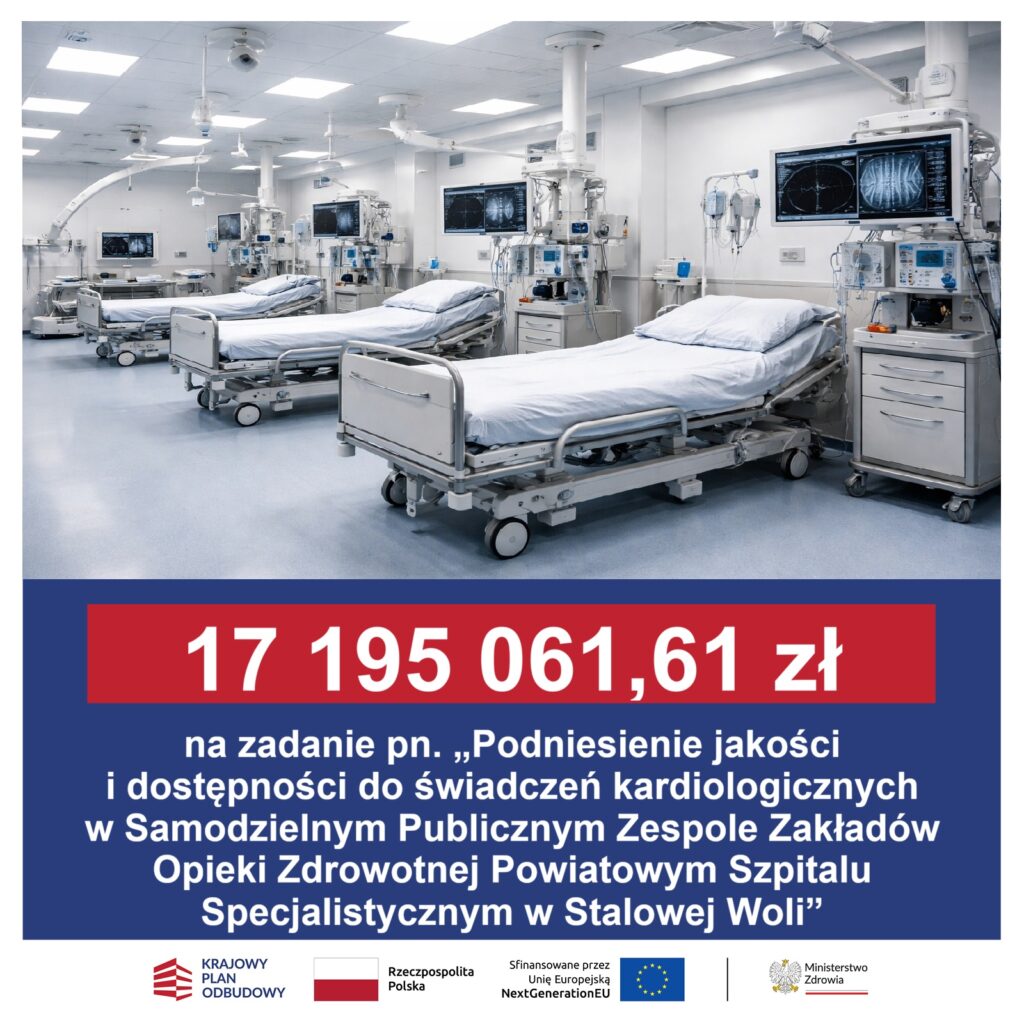 Całe zadanie ma wartość 18 mln 183 tys. zł, z czego 17 mln 195 tys. zł będzie stanowiło dofinansowanie z KPO, a pozostałe środki – w kwocie prawie 2 mln zł, zostały zabezpieczone w budżecie Powiatu Stalowowolskiego. W ramach opisywanej inwestycji przeprowadzone zostaną prace remontowo-modernizacyjne, których celem będzie dostosowanie infrastruktury Oddziału Kardiologii Inwazyjnej oraz Oddziału Intensywnego Nadzoru Kardiologicznego do aktualnych wymogów sanitarno-epidemiologicznych, organizacyjnych i funkcjonalnych, bez ingerencji w elementy konstrukcyjne budynku. Istotną częścią całego przedsięwzięcia, będzie również zakup sprzętu i wyposażenia medycznego – w tym nie tylko dla Oddziału Kardiologii Inwazyjnej, ale też na potrzeby Poradni Kardiologicznej, Pracowni Hemodynamiki, a także Pracowni Elektroterapii/Elektrofizjologii.